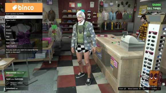 首先你一定要当老大啦啦~换上你喜欢的套装。打开差事,死斗第一个(英文版),打开差事,开始差事~然后现在换一些部件,头套,围巾,手链…然后退出差事~你会发现还是原来的服装…然后把风格切换成已储存的服装,你会发现是你在死斗里的套装~现在储存就好啦!