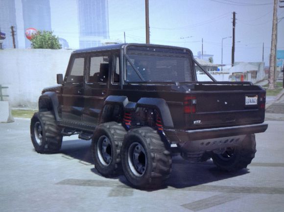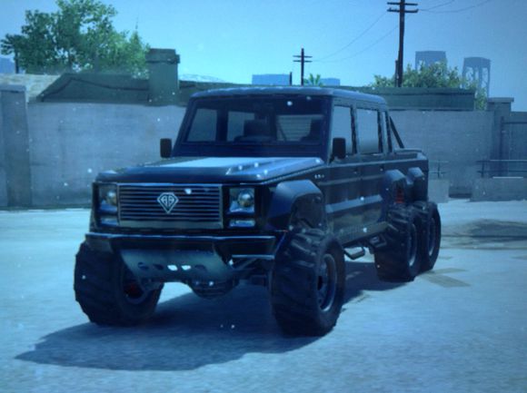 尼 玛这迪布达说都不要说,绝逼仿的奔驰G63 6轮的版本,我擦你还搞得这么像,R星你特嘛等着被大奔告外观侵权算了。不过,这辆迪布达绝对可以和威皮•大脚霸王相比较,事实我 还没真正比过。值得一提的它估计是首次在gta里采用6轮AWD四驱的民用越野车,卧槽全地形啊,尼玛驶过各个地形都不是个事啊。另外,前部和后部都有钢 板加固保护底盘,我想这车底部都被包裹保护了吧。同时,这车应该是和大脚霸王一个类型的,都是高强度越野用皮卡,那么这车一下子坐六个基佬应该没问题,没 事嘛顺便运运尸体到荒郊野岭妥妥的至于在改装方面的话,是和原版迪布达没什么区别的,该怎么改还是怎么改,和原版差不多,所以性能方面就不作任何分析了。