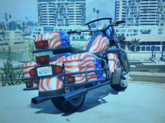 每 当这时,一看到这辆摩托车,我特嘛就忍不住吐槽一句:“特么的这不是高速巡警骑的警用摩托车嘛!!!”就是这样,这辆摩托车就是原本的警用摩托车去掉警用 大灯和警方皮肤并且还上上独立日皮肤的。准确的说就是换了外观再作为dlc发布的,尼玛R星果然坑总的来说,此车性能还行,爬坡毫不吃力,上去妥妥的。同 时一般高速行驶的话,性能综合性和操作综合性还是比较稳定的。对于这个摩托车,我可以说:亮点不多,换了外观,无法再做更多评论分析。