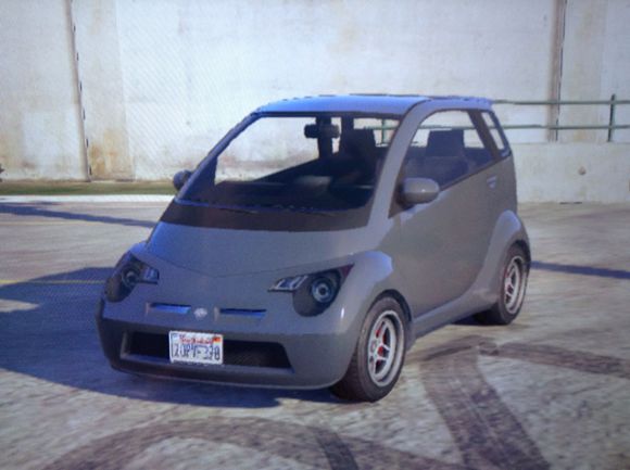 这 辆哑剧我已无力吐槽,这特嘛不是smart吗说真的,估计它是自威皮•……我擦就是麦克女儿的那辆酷似mini的车,我擦尼玛的我 忘了名字了,反正这车绝对是gta5当中最小的机动车了。这车刚上手,尼玛的各种飘啊,跟个小皮球似的,大车撞一下都得飞出去,可不是嘛,这一飞就是老 远,车都找不到了我去另外,哑剧撞车也是各种滑稽,加速还老快,腾的一下子冲出去直接撞墙上,还没反应他已经四脚朝天了。或者就是撞了以后,360度转了 一圈四脚朝地,然后飞一般地跑了另外,这车性能还不错,改装了外观以后也是各种拉风,还拥有和绝致•海致一样地贴纸涂层。