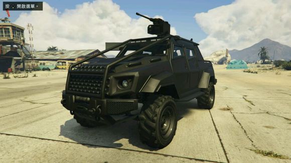 额, 这车呢,一看就感觉是仿的乔氏巴顿。测试的时候我感觉这车变态程度和死亡公爵差不多了要。先说说它防护到什么程度,就是你连续撞爆三个加油站还不爆的那 种。速度么又特别快,基本是任何在它面前的车都毫无阻力,一撞就给你撞飞掉。同时么越野性能也相当强大,基本是属于那种上天下地的,拦都拦不住。我很难想 象附带机枪的那个版本凶悍到什么程度,差不多你在一个公共战局看到满地图跑这辆车,你基本就可以换战局了,不然就是作死