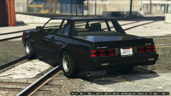 作 为一辆元老级的车,GTA4的车型又一次在GTA5中回归,然而又是OL独占。作为原型为别克Grand National X的品味车,此车有着正方形车身、实用的汽车工艺及T型车顶。搭载V8 Tubro引擎,最高时速可达225.5公里,采用后轮驱动,总车重1200公斤。操控方面我感觉这车依旧延续了美式肌肉车扎实的手感,可是转向角度偏 小,容易转向不足。然而去班尼车坊改装了以后,升级价格达到33万,本来是认为可以更改轮轴的倾角度的,结果有了液压系统后就没法更改,实在叫强迫症不能 忍。我还没有全部改装,因为钱不够了,价格我觉得全改最起码达到90万。然后性能提升的话,感觉还是有差距的,起码是手感,感觉像是在开羽毛。。。。。。