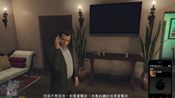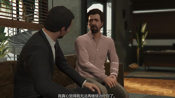 在麦克和家人和好的那个任务中,麦克一家去看心理医生,全程中他没有说一句话,而是淡定的坐在那里。最后对麦克说一句时间快到了
