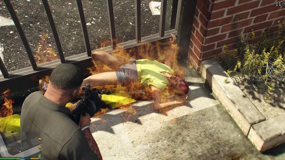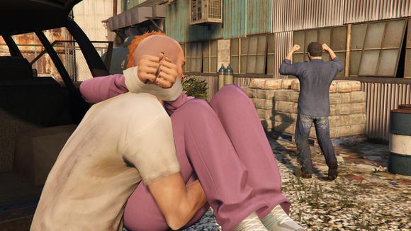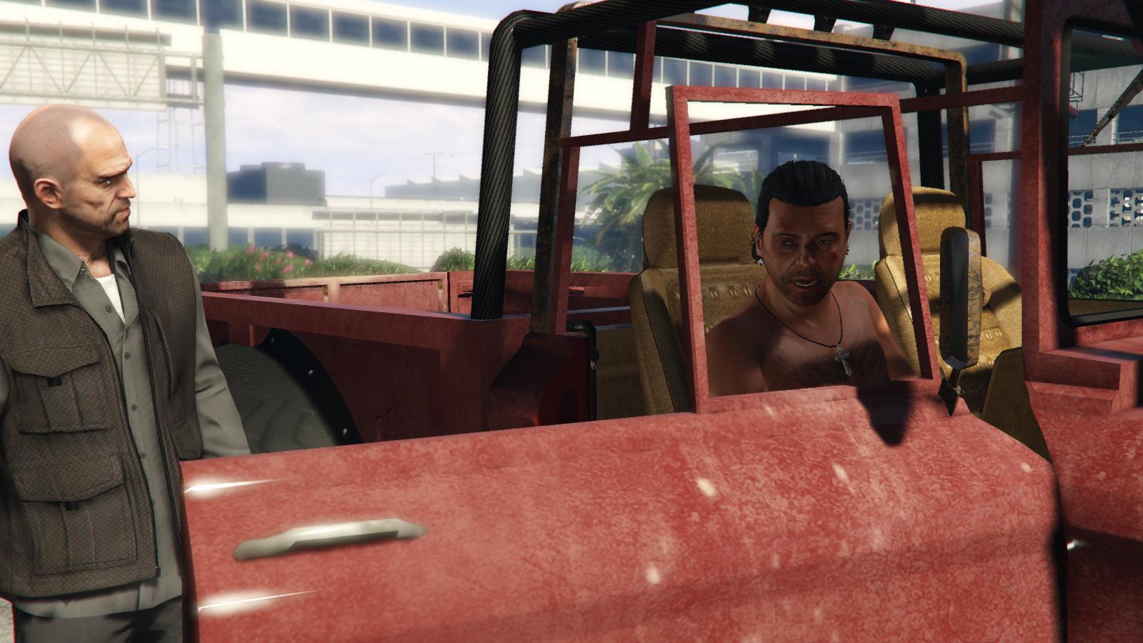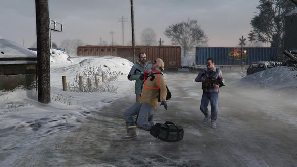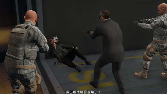 在受到军队和IAA的人包围的时候,海因斯用苦肉计,打中自己的腿,还说为自己的国家挨子弹,不知道国家的多少钱被她贪走了,值得一提的是,这里穿西装这个人在GTA4中命令过niko帮他做事