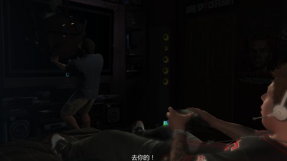 当麦克在楼下吃着东西看着电视的时候,吉米这小子开始玩游戏并且开始大声骂人