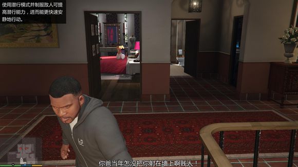 而 吉米在这种紧要关头利用夜视镜以及关掉灯救了他老爸一命,我开头说吉米胆子小,是因为在一些平常的时候,从这里可以看出吉米为了救老爸也是拼了,为什么这 么说?对方是受过训练的特种兵,而自己只是一个成天吃吃吃玩玩玩的死肥宅,要是被那个雇佣兵发现了估计麦克以及吉米都要归西