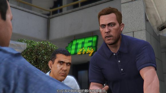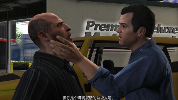 从 这张截图可以看出麦克并不是怕他本身,而是怕他fib的身份,看麦克的坐姿就知道了,如果麦克怂了他的坐姿不会那样高调,况且麦克打架也很少怕过谁,因为 西门派小富偷吉米的车,麦克直接撞碎他的车店并爆打他一顿,但是西门和fib的海因斯可不一样,就当时来说,麦克如果把海因斯揍一顿,他估计就完蛋了。麦 克有理智,懂得冷静,这也是为什么他现在住在豪宅中而崔佛住在沙漠中还惹了一身麻烦。好了话说回来,海因斯是一个不折不扣的混蛋,他其实把升官放在贪污的 前面。他比戴夫还想要升官,虽然他的职位已经不小了