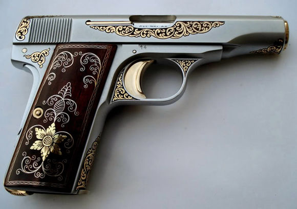由于枪口套上的一圈漂亮的 “滚花”,使得这支新型小手枪,在外观上有了一个非常鲜明而典型的特征。在中国丰厚的枪械文化以及丰富的语言的共同作俑之下,勃朗宁FN M1910 7.65mm自动手枪就被“约定俗成”地称为“花口撸子”。除了7.65mm的口径外,也有使用9mm勃朗宁自动手枪弹的“花口撸子”。