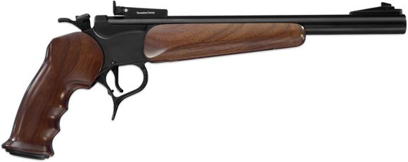由 美国Thompson/Center Arms开发于1967年,狩猎用的单发折开式(Single shot break-open)手枪。虽然是手枪但更像小型化的步枪,枪身结构极为简单,折开式枪管,只含有扳机,击铁等射击所需要基本机械结构。单发装弹,不使 用弹夹,重新装填必须通过折开式枪管后方装入,无抛壳机构,单动(single Action)式,不拉起击铁无法扣动扳机。作为手枪而适合发射威力和精度都极高的步枪弹而深受爱好者的欢迎。