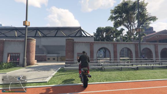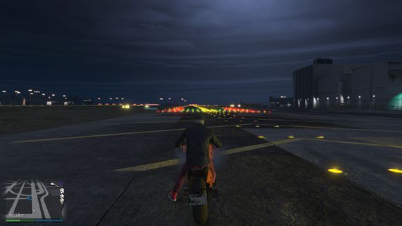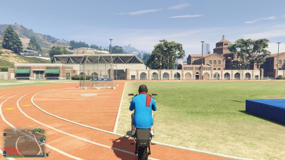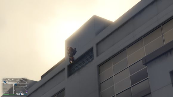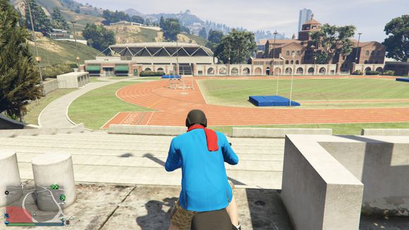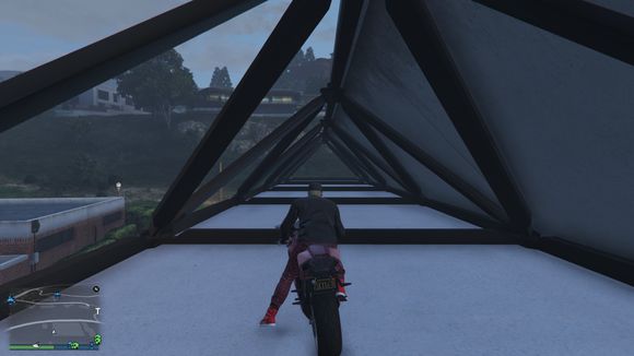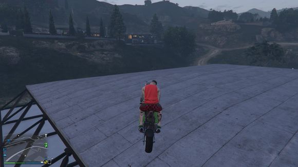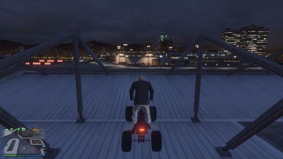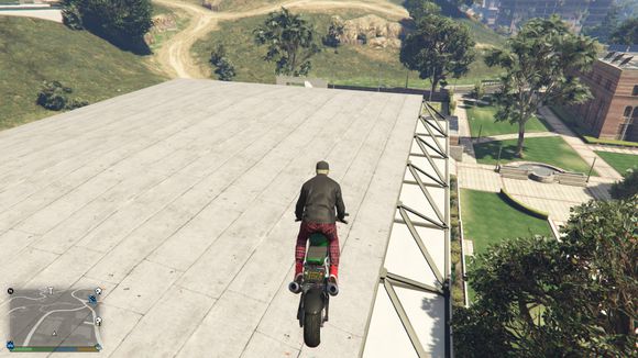 准备飞跃,目标是体育馆楼顶