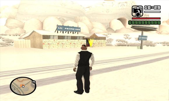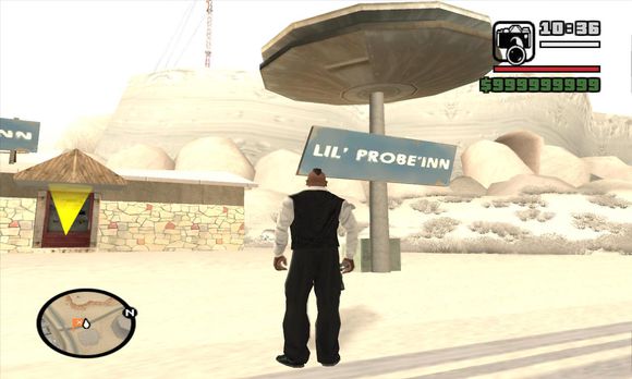 这 家用UFO当招牌的酒吧是在反讽现实生活中的内华达州雷切尔的Lil* Ale Inn.这家酒吧最里面的办公室里还有一张神秘的地图,这张天书一样的地图上用许多指针标出了San Andreas的一些特定的地点,在Toreno的小茅屋里也能找到这张图。如果你去调查这些地方你会发现许多地点都和美国的历史有关。例如在Las Venturas的体育馆你会看到有关60年代许多嬉皮士受到歧视而被杀的内容。