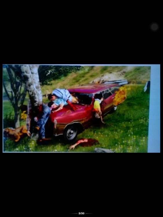 在这可以看出是父狗在车外,妈女男在车里,然后有很大的冲击力撞击的车子,所有人都死了