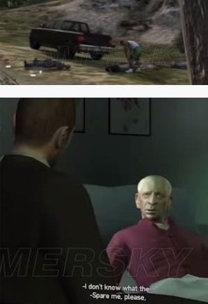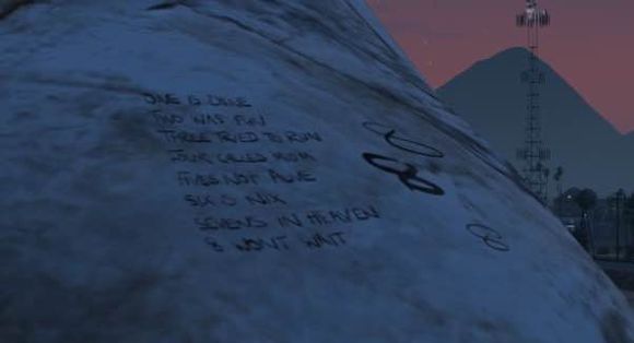 注:nothing to see here是一个GTA系列的传统彩蛋 比如圣安地列斯金门大桥顶部和GTA4心脏门口