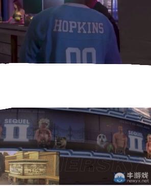 在脱衣舞俱乐部里可以看到一个穿蓝衣服的人衣服上写着HOPKINS,反射的事恶霸鲁尼里的主角Jimmy Hopkins
