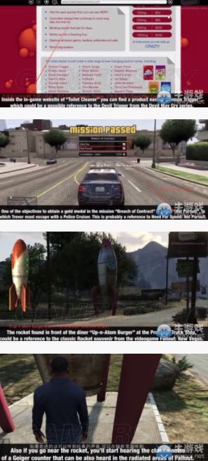 注:在I FOUGHT THE LAW的任务里崔佛和麦克把吃一半的甜甜圈扔到地上,模仿的是SA的RETUNITNG THE FAMILY的任务很像,在SA它是向空中监狱这部电影致敬