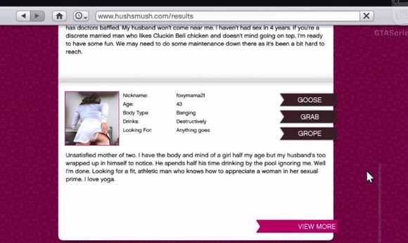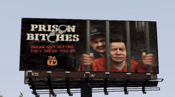注: 有一个电视节目的广告 下面的红色小字是对监狱性“爱”很有趣的映射。有一家公司的名字叫做FAP-FAP 网上用语指的是“自卫”, 麦克的家里 Amada的床头 可以看到一本非常有名的性指导书 一些Fabien的瑜伽动作也来自这本书,在游戏内的“情感交友”网站上 Amada的昵称是foxymama21 她都43岁