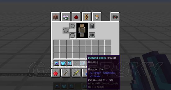现在介绍一个比较有意思的特性,我身上的四个盔甲全部附魔上经验修补,