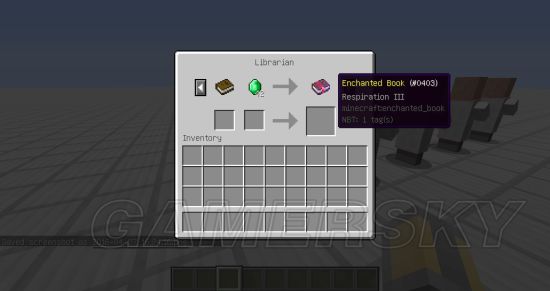 在1.9,所有图书管理员的交易模板都是固定的:第二个,第九个和第十个都是附魔书交易,并且每一个都有几率获得 经验修补。