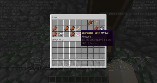 经验修补 入手途径非常多,挖矿或探险时,废弃矿道,沙漠神殿,丛林神庙,地牢,以及末地要塞往往能给你惊喜;