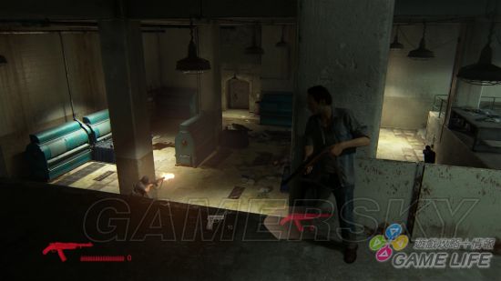 至于战斗的部分,虽然德雷克等人主要还是使用枪械作战,但身经百战的宝藏猎人们自然都身怀绝技,除了用枪枝解决枪枝外,玩家也可以选择采取较隐匿的杀害手法,运用德雷克的高超身体能力移动到敌人背后无声解决,或是躲在暗处伺机而动。当敌人就在近处时,德雷克也能使用一连串的近身攻击直接打倒对方,在攻击手段的选择上可说是相当多样化。不过在故事进展中还是会无可避免地遇到枪火交驳的场面,如果是对射击游戏不太擅长的玩家,可以在游戏内开启自动瞄准功能,在该功能的辅助下只要方向对就能够攻击到敌人,大幅加快结束战斗的速度。