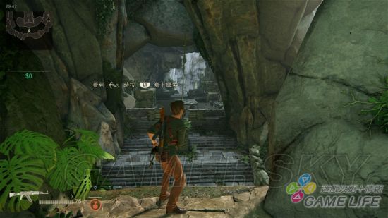 而在本作的游戏部分,当然还是少不了探索各色地形必备的跑酷动作,德雷克还是得四处跑跳爬荡,才能够抵达目标地点完成当前任务。虽然在前期尚未正式进入剧情核心以前,移动的路线都还算是单纯,但在进入重点本篇后,路线的探索也会成为解谜的一部分,如果玩家不睁大眼睛仔细观察周遭,很容易就会看丢前往目的地的可行路径。不过当玩家真的偏离正确路径太远或太久时,当时随行的 NPC 和系统都会给予提示,基本上不会有「怎么样都找不到路」的问题,通常在因为尝试错误而死亡几次后都能够顺利找出解答。