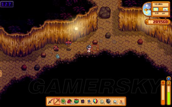 炸的时候尽量不要留单个铱矿,那样还要用锄头挖,很耽误时间,全部用炸弹解决最好