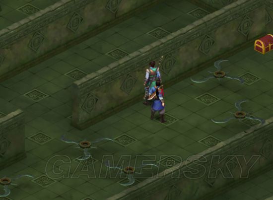 2.往前走,进入右手边迷宫,往下走,开扳手打开【飞刀迷宫】,进去向上走,到了五飞刀处选择向上走【tip:这里难度有,多试几次。上面中间有块地方是两面飞刀都伤不到的】,踩石板获得提示后回到主道。
