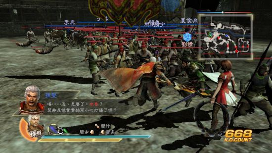 注意对话头像,用的是辽神在吕布军时的黑盔红巾头像。说明张辽还是以属下的身份来与吕布交战。