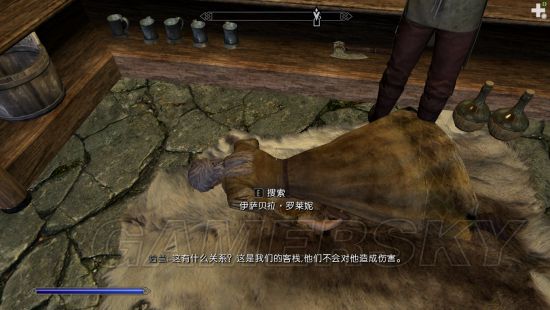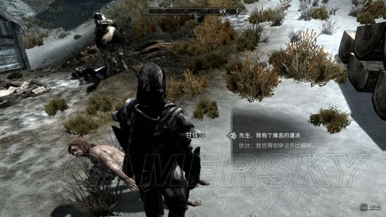 这个甘佳尔就是一开始如果你跟着暴风斗篷走遇到的第一个尸体,如果还在玩的朋友可以回到海根镇的那个堡垒里,他应该还躺在那里