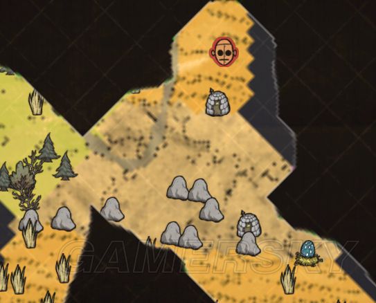看到小飞虫,这边应该是猪王区,准备在红叉地方建家,冰快要融化了,赶紧建家。