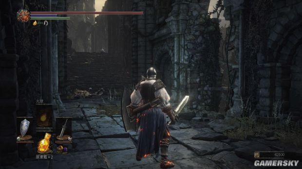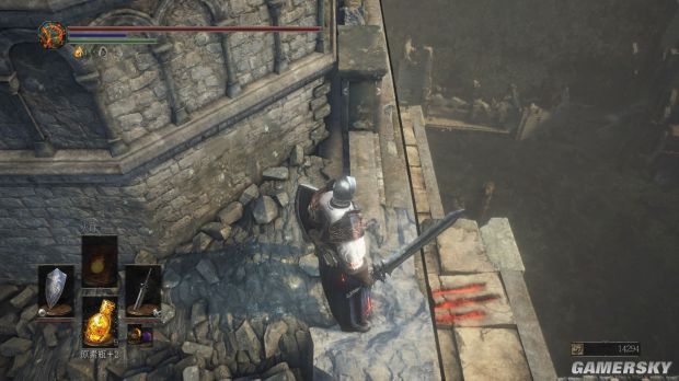 注意小屋旁有楼梯,上去有个篝火(法兰老狼),可以休息一下,还有重要的道具晚点在提