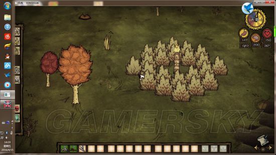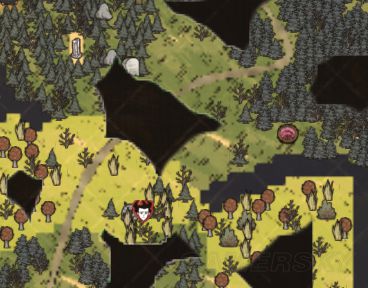 刚开始,最效率的探图当然时沿地图边缘探图啦,收集树枝,草,燧石。古人有云:要致富先撸树。有燧石就赶紧做斧头砍树,砍上3颗左右就继续探图