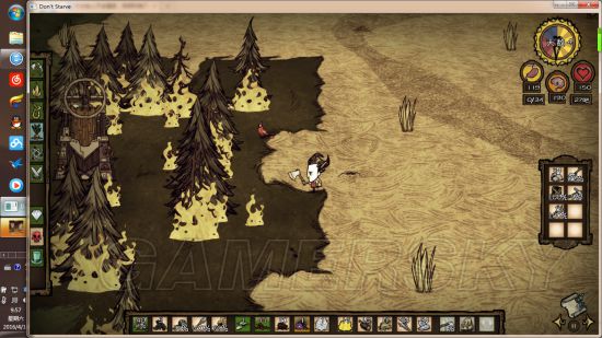 尽量不捡萝卜,占格子。第一天第二天夜晚就烧树砍被烧的树存木炭,做每个锅需要6个木炭,每个晒肉架需要2个。(也有人喜欢夜晚举着火把探图,后面定好家的位置再烧树)