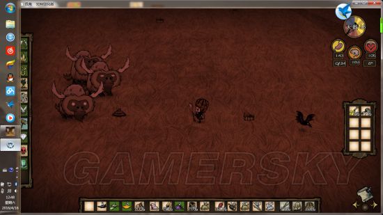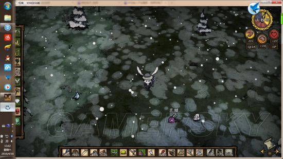 看到那只蝴蝶没,新手必须要会的技巧,打中立生物的方法。ctrl+f,等蝴蝶在花上停留,或者是在某一位置停留时,赶紧跑上去,然后按ctrl+f。杀了掉落蝴蝶翅膀,加hunger9.4,血量8.有时候掉黄油。是因为蝴蝶叫butterfly,黄油是butter,设计员的玩笑。黄油加20饥饿值,40血。