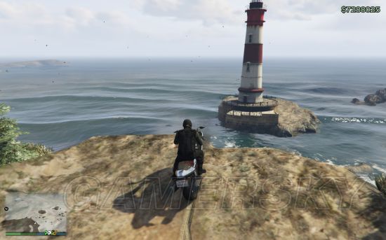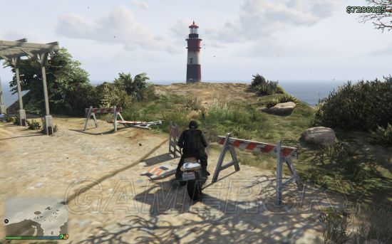 这个就比较尴尬了 直接飞到灯塔上 废了楼楼两部摩托才成功