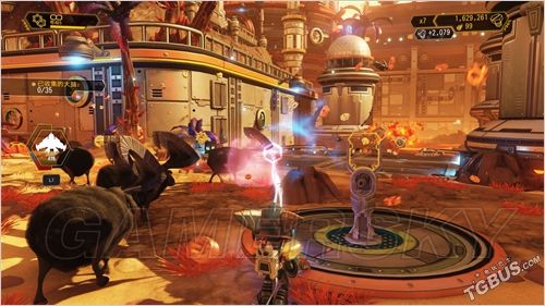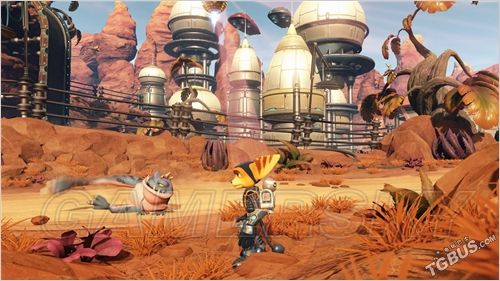 游戏并非单纯的线性流程,玩家除了可以跟着流程不断前进之外,随时都可以回到以前来过的区域进行探索收集。游戏一共有12个星球可以冒险,每个星球都有完全不同的关卡设计与地理环境。荒凉的威尔丁星球像极了美国西部,我们的主角瑞奇正是在这篇土地上结识了叮当并且踏上了冒险。