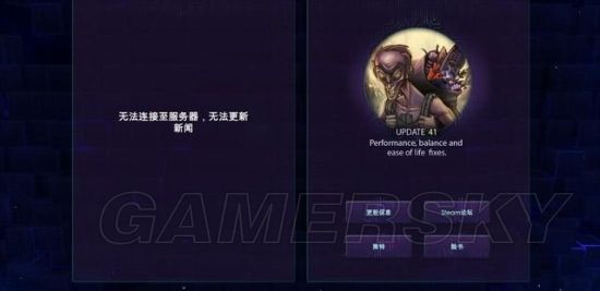 刚进入游戏的界面如图,此界面链接到官方服务器,显示游戏新闻,并可直接链接到推特、脸谱和Steam论坛。