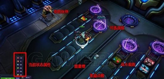 进入大厅后,会看到大厅被几道门隔断,想要打开前面的一道门,需要在前排选择挑战任意的2个战役,这样才能将中央的能量槽蓄满。