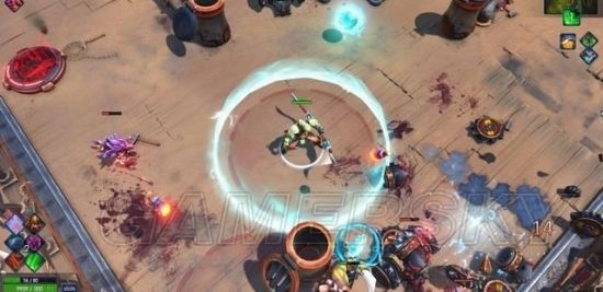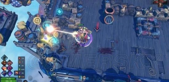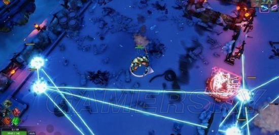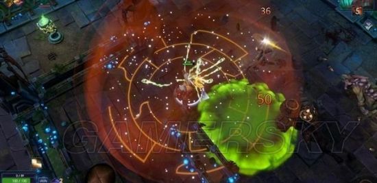 技能1:电能过载(Overcharg)。按下鼠标右键在射周释放一圈光波,对身周的敌人造成重伤并有击退、击倒效果。
