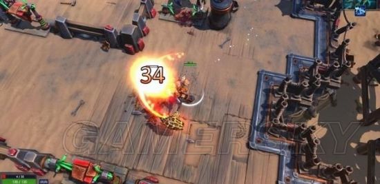 场中还有一些特殊的桶可以引爆,比如图中的熔浆桶,攻击的话会爆出火焰,对敌人造成伤害。