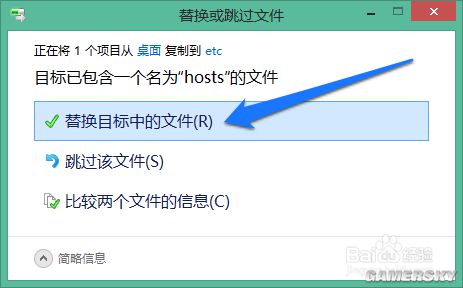 然后选择替换目标中的文件,如图所示