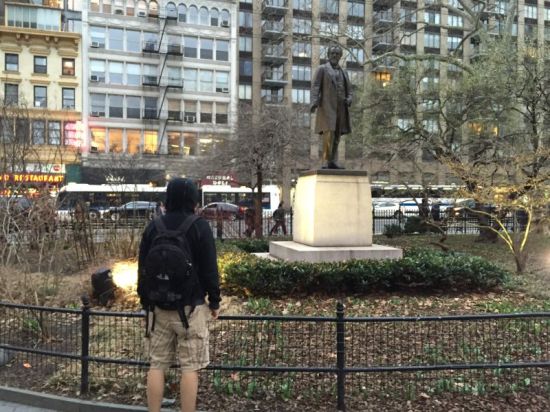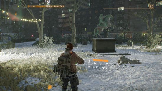 吓死爹了,警局里的雇佣军装备可比我的好多了,我现在在麦迪逊广场弓远,快让我盯着这雕像沉思下....咦,这人怎么骑起马了