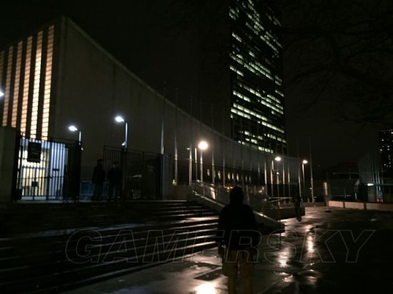 发电厂那些暴徒比我想象的要菜多了,没几分钟就都杀光了.刚走出来就听到联合国被LMB占领的消息,果断顺着1大道走到了联合国门口,不过这墙这么高,怎么进去呢...