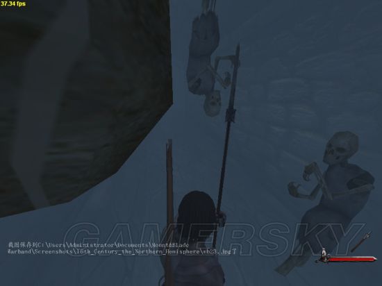 水里泡着N多骷髅,细心的童鞋可能发现了,这里所有的骷髅姿势和衣着全部一样,而且有种似曾相识的感觉。。。。。。没错,这就是战团原版大名鼎鼎的,被无数新手反复拿来膜(shui)拜(tie)的——布鲁家堡骷髅大神!啊哈哈哈哈哈哈。。。。。。