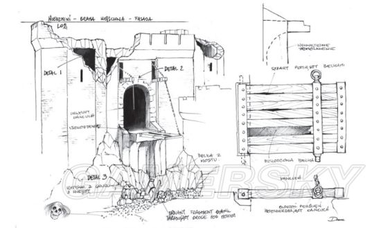 草图的细节是设计中最重要的一环,丰富的城堡的细节,使它更加真实:城堡的防御者能被厚实的城墙保护,护城河和吊桥,狭窄的城门,这些都提供附加防护。城堡的驻军可以从庭院的一口井中取水——这类似于奥拉瓦城堡的一个井。制作组还配备了要塞的城防武器——弩车和抛石机的设计。游戏最初杰洛特能在城堡里的猎魔人遭受攻击时,运用这些武器来发射大型炮弹防御敌人,设计师们还加入了巨型大锅热油锅——这可以浇到那些攻城者身上,但这个想法被放弃了。在这个故事的早期版本,火蜥蜴的土匪攻击凯尔·莫罕时是靠着绳索和梯子登上城墙,但这个想法也被搁置。最后火蜥蜴是通过魔法和一只巨魔螳螂来攻破城门。