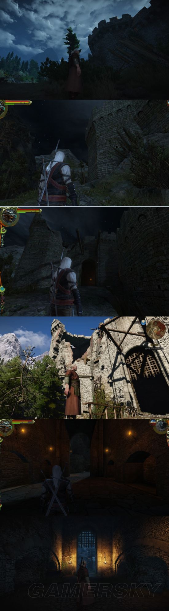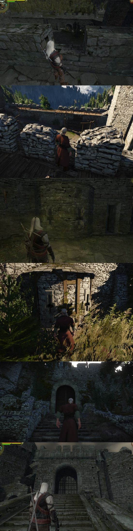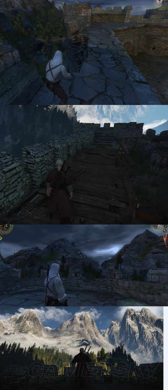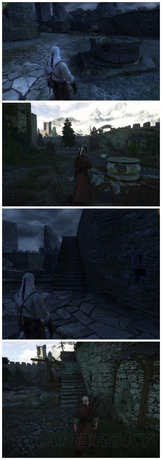 注意第三、四副图右边的石块,巫师3上给长了一棵树。