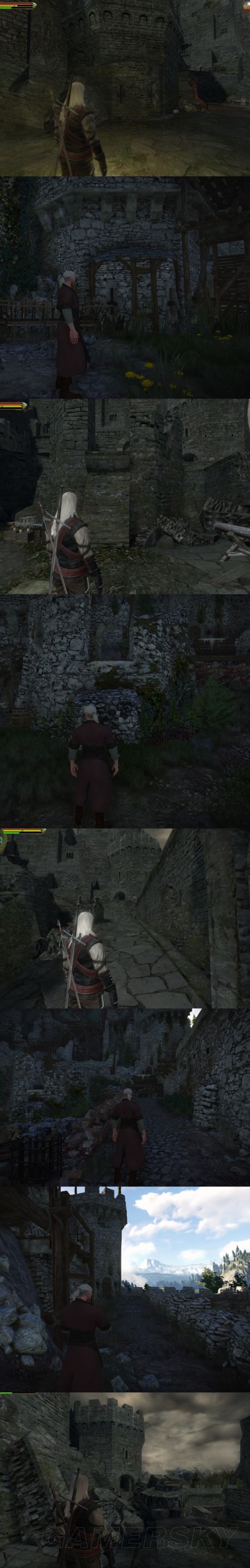 而在巫师3中,制作组并没有改变它的基本布局。它仍然是巫师1中的那个古老的城堡,但他们制作了很多巫师1时代难以展示的细节,增加了岁月对这座城堡磨损的痕迹,城墙和塔楼有明显的破坏迹象。有些是发生在一个半世纪前的战争的结果,而有些则是巫师1时期火蜥蜴帮留下的痕迹。