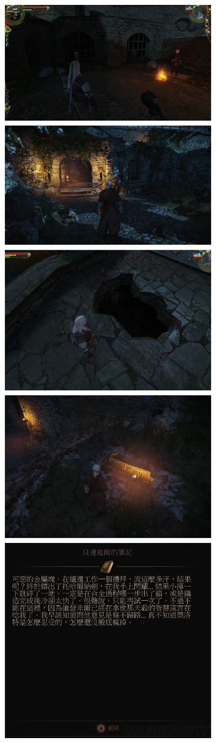 在巫师3中这里有一个彩蛋,里面可以进去捡到贝连迦尔留下的笔记,而巫师1中的这个破洞在3代仍然没有被修复。