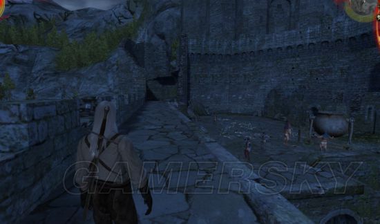 先从城堡的外环境找起,凯尔·莫罕在巫师1中并不大,而城堡外环境展示出来的东西相当有限。在3代中制作组将外面的环境给全部重建,但是巫师1中出现过的许多地形地貌都保留下来了。