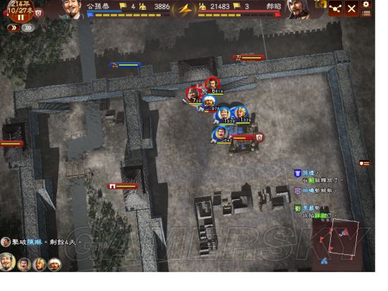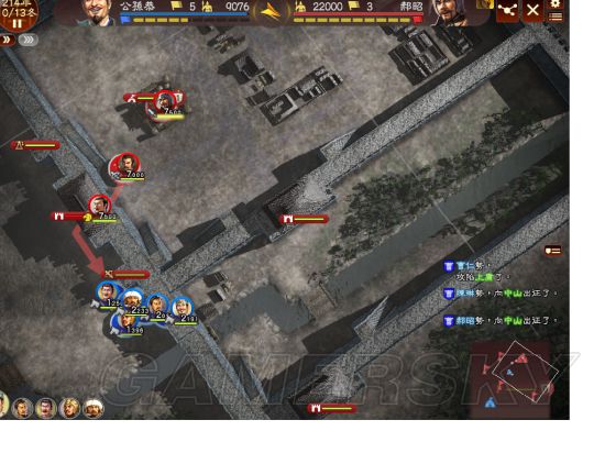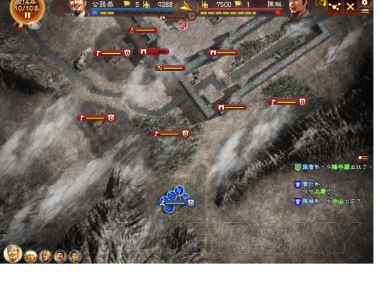 一队堵门,三队攻阵。蓟已陷落,田畴队消失。轮流去堵门,一队快不行了时换另一队